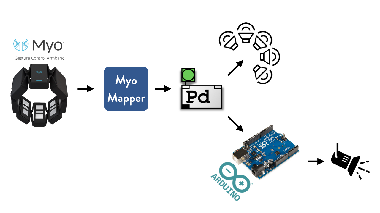 Di Donato, B., and and Dooley, J., (2017) MyoSpat: a system for manipulating sound and light projections through hand gestures, 3rd Workshop on Intelligent Music Production (WIMP), Media City UK, University of Salford, Manchester, UK. (PDF)